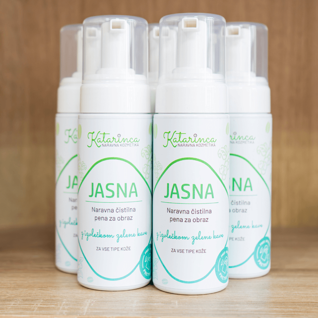 • JASNA nežno čistilno peno z izvlečkom zelene kave za vsakodnevno čiščenje kože (zjutraj in zvečer oz. po potrebi)